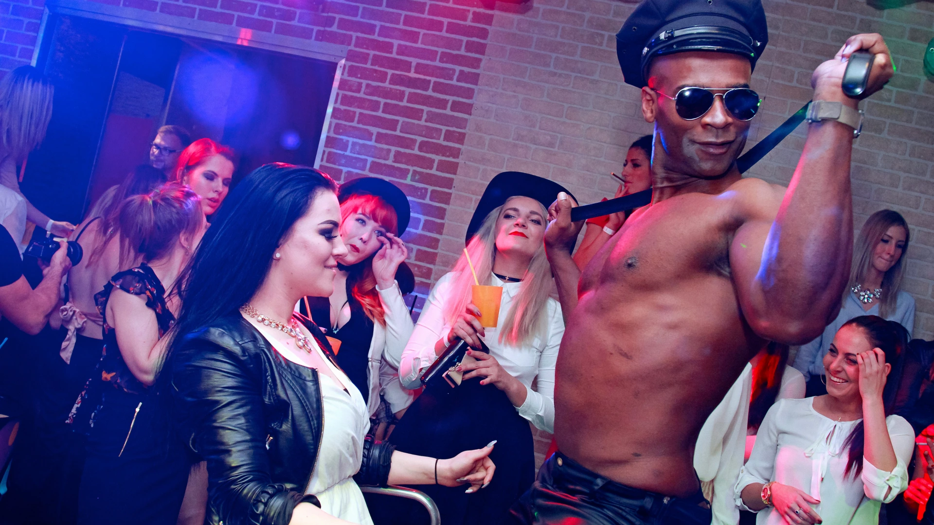 After this sexy black police officer stripper has finished his stage duty, not only this guy is letting his cock sucked, but also his friends are working these amateur bitches. The best move of this black dude is stuffing his massive cock into some female pussy and then their mouth, here are plenty of amateur sluts who need this kind of treatmen...